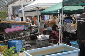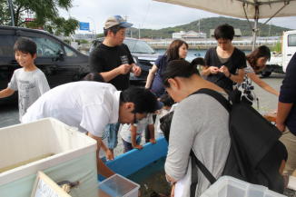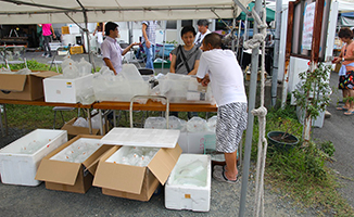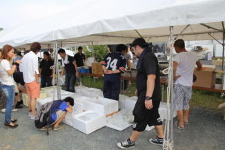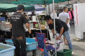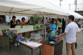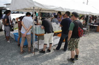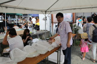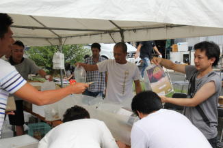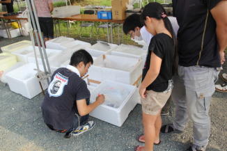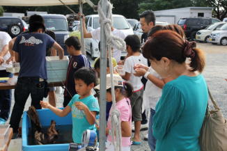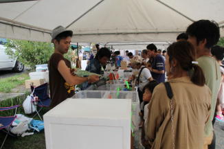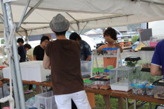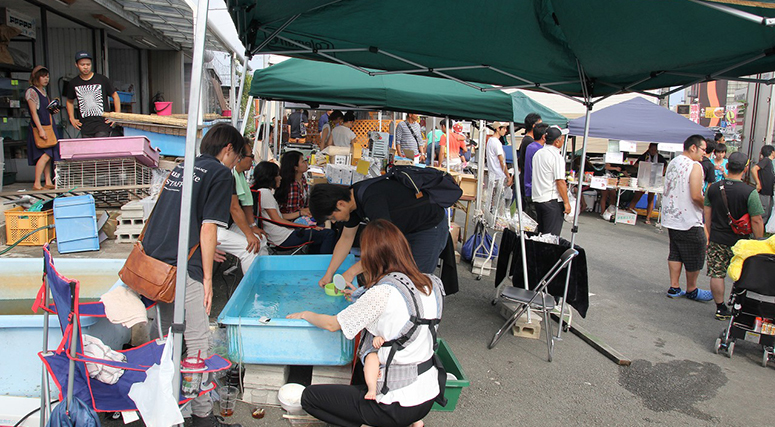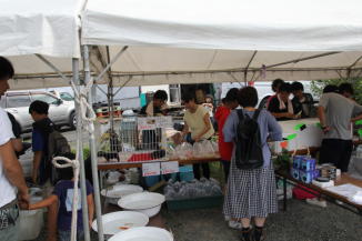 会場には飲食コーナーや釣り堀、金魚やメダカすくい等の、